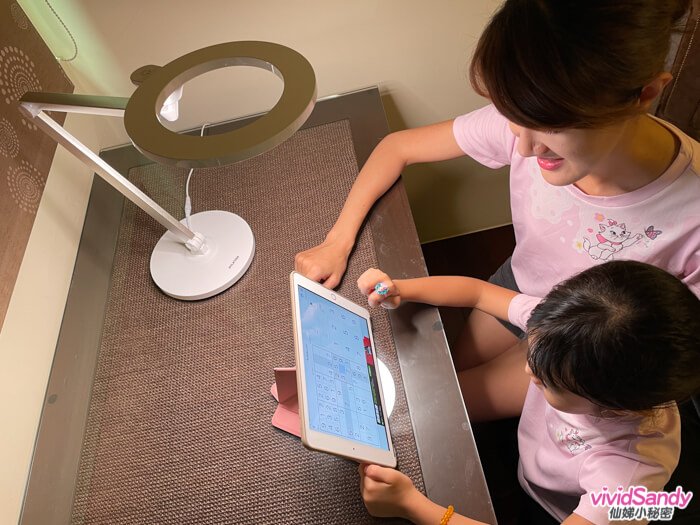 黃光的部分,還擁有 2700K 夜間閱讀光,當晚上想閱讀時,極低的藍光可以放鬆舒眠,低干擾褪黑激素分泌,比較不擔心影響孩子的睡眠品質。論哪一種色溫都很容易看出它的均勻光線,這是身為一個檯燈最重要的功能啊!學過體操技巧的護眼檯燈就是不一樣! 動一動馬上變身成環形網美拍照燈,超酷的吧~ 我也是因為這個bonus 而挑選這個檯燈,平常要再加拍照或直播可以直接拿來用,而且白黃光跟亮度都能隨意調整,比一般的環形燈精緻超多,打出來的燈光又更加自然與均勻,不會只有臉亮身體暗這樣。