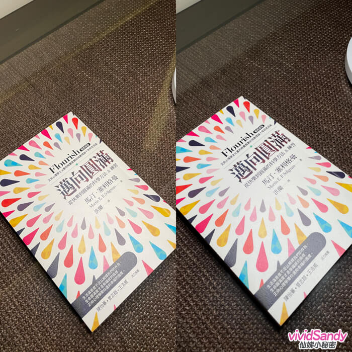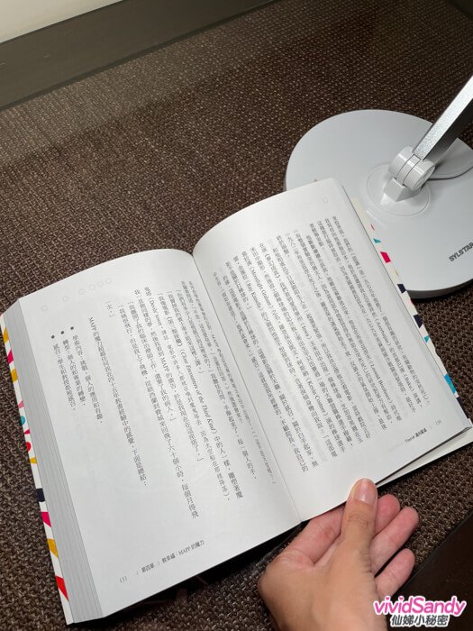 最酷的地方是這個護眼檯燈還有附贈一個遙控按鈕,底部附有黏膠可以放在/黏在任何想操控的地方,使用的方法跟機身那個平面按鈕道理一樣分長短按,我是喜歡把這個按鈕放在枕頭邊,把檯燈的身體稍微拉長一點我就能在睡前看的書,不用起身就能關燈。6500K專注白光的最暗與最亮比較,中間是無段數的,長按後停下來就調好了,而且下次開啟時它會記憶上次調整個亮度,無須再次調整。拿了本白底彩色的書以便大家參考光線,由於檯燈的高顯色性Ra>95,比起其他檯燈更能夠顯示色彩的飽和度。
